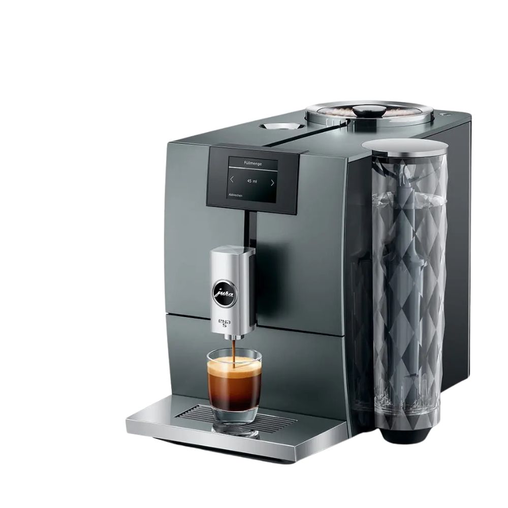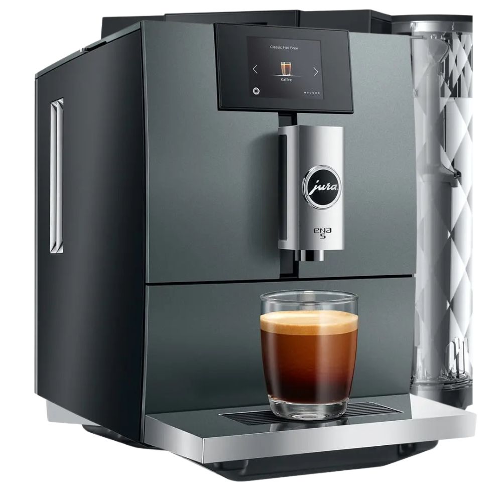 De ENA 5 onderscheidt zich door de hoge standaard van de compacte klasse en de innovatieve technologieën van JURA. Hij presenteert zich als coffee-only-volautomaat die getuigt van liefde voor het bijzondere. In het TFT-touchscreen geeft de ENA 5 de drie bereidingsgroepen weer met verschillende achtergrondkleuren en loodst hij koffiedrinkers heel eenvoudig door het menu. De ronde designdetails van zijn behuizing in combinatie met de rechtlijnige vormentaal trekken de aandacht. Ook het waterreservoir met het diamantpatroon over een groot oppervlak en de verchroomde koffie-uitloop zijn bijzondere blikvangers.